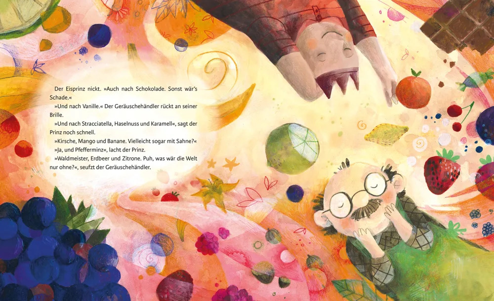 Der Geräuschehändler ist zurück von der großen Welt-Geräusche-Reise. Noch während er seine mitgebrachten Geräusche auspackt, kommen neue Kundinnen in seinen zauberhaften Laden: zwei Badehosen wünschen sich einen herzhaften Arschbomben-Klatscher, ein Außerirdischer ein echtes Souvenir von der Erde und wie klingt eigentlich Himbeereis? Alles kein Problem für den Spezialist für klangvolle Wünsche! Bis eines Tages das Monster seinen Rucksack in dem Geräuscheladen abstellt. Trotz aller Warnungen ist der Geräuschehändler zu neugierig und öffnet ihn…