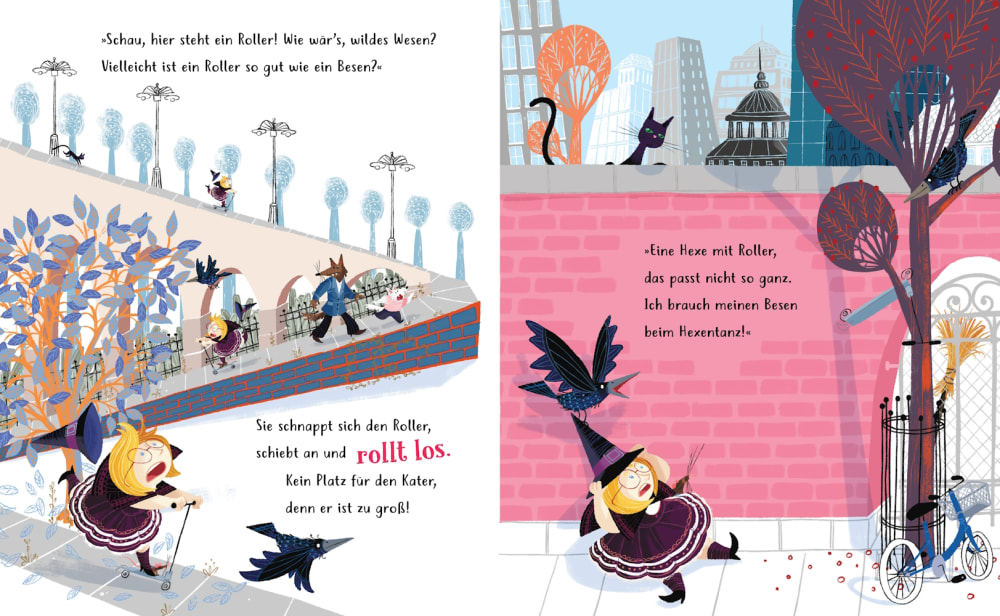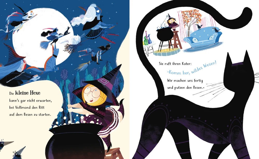 Heute Nacht ist Vollmond, und die kleine Hexe kann es kaum erwarten. Zusammen mit den anderen Hexen möchte sie auf ihrem Besen durch den Himmel sausen. Aber, oh Schreck, der Besen ist nicht an seinem Platz! Sie sucht in allen Schränken, auf dem Dachboden, im Schuppen, sogar in ihrem Kessel und unter dem Bett – aber er ist nirgends zu finden. Die Zeit drängt, ein anderes Transportmittel muss her. Doch Fahrrad, Bagger, Zug oder Flugzeug fühlen sich nicht richtig an. Kannst du der kleinen Hexe helfen? Schau genau hin, denn der Besen hat sich die ganze Zeit heimlich versteckt.