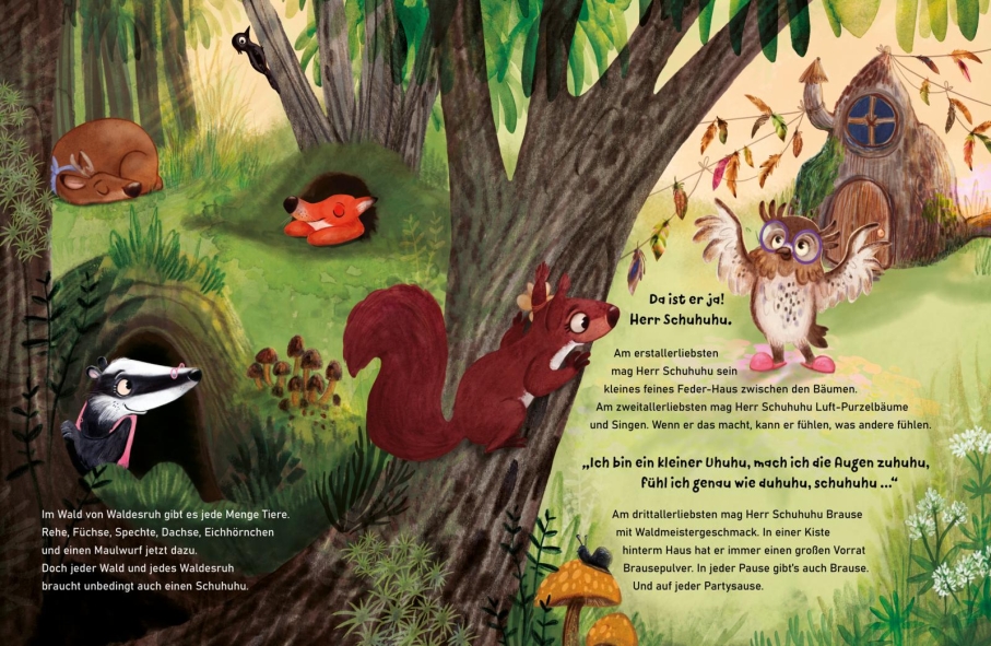 Herr Schuhuhu schmeißt die waldbesten Partys! Außerdem kann er sich ganz besonders gut in andere hineinfühlen. Alle mögen den empathischen Uhu sehr. Doch dann, oh Schreck, herrscht große Aufregung in Waldesruh. Herr Schuhuhus berühmte Waldmeisterbrause wurde gestohlen.