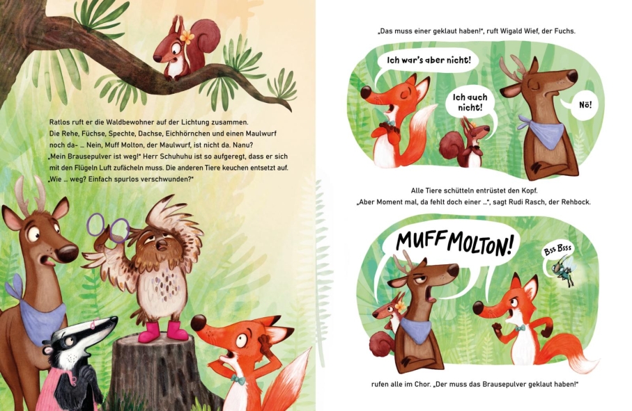 Die anderen Waldtiere sind sich sicher: Muff Molton muss der Dieb sein. Der Maulwurf ist gerade erst nach Waldesruh gezogen und irgendwie ist er … anders. Wütend wollen sie ihn zur Rede zu stellen. Aber Herr Schuhuhu tröstet den traurigen Muff und versucht zu verstehen, was wirklich hinter dem Diebstahl steckt.