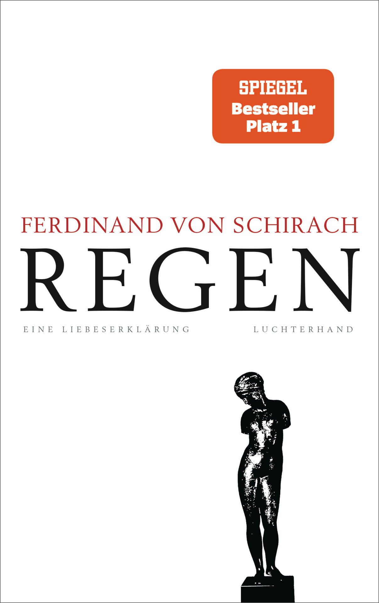 Ferdinand von Schirachs neues Buch »Regen« ist eine Erzählung in Form eines Theatermonologs, den Ferdinand von Schirach ab Herbst 2023 im Rahmen einer großen Premierentournee auf zahlreichen deutschen Bühnen selbst sprechen und aufführen wird: Ein Mann kommt durchnässt aus dem Regen in eine Bar – auf die Bühne – und denkt über Verbrechen und Strafen nach, über das Großartige und das Schreckliche unserer Zeit, über die Würde des Menschen, die Einsamkeit, die Liebe, den Verlust und das Scheitern.